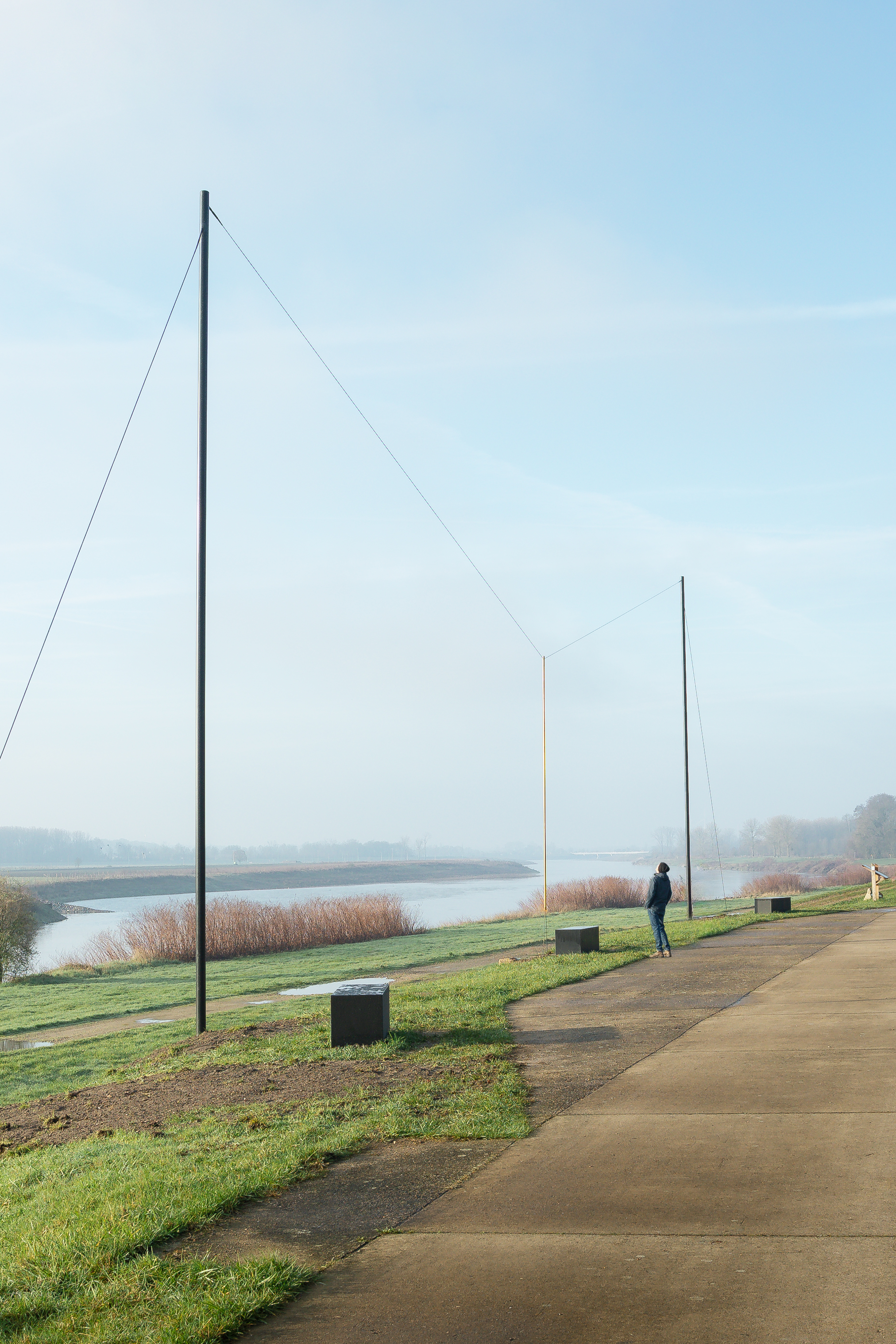 At the location of the former ferry, Kruip pays tribute to this history with her sculpture. From the start of the project, a local working group from Maasmechelen was closely involved. They considered it important that the artwork would enhance the experience of the landscape without dominating it. Together with Z33 and RLKM, they reflected on the character of the site, its history, and the ambition to realize a work that would be subtle, poetic and meaningful. Germaine Kruip was unanimously chosen to give shape to that ambition.